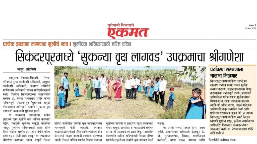 “स्मार्ट व्हिलेज सिकंदरपूरमध्ये नाविन्यपूर्ण ‘ सुकन्या वृक्ष लागवड ‘ उपक्रमाचा श्रीगणेशा ” या पुढे लावलेल्या
